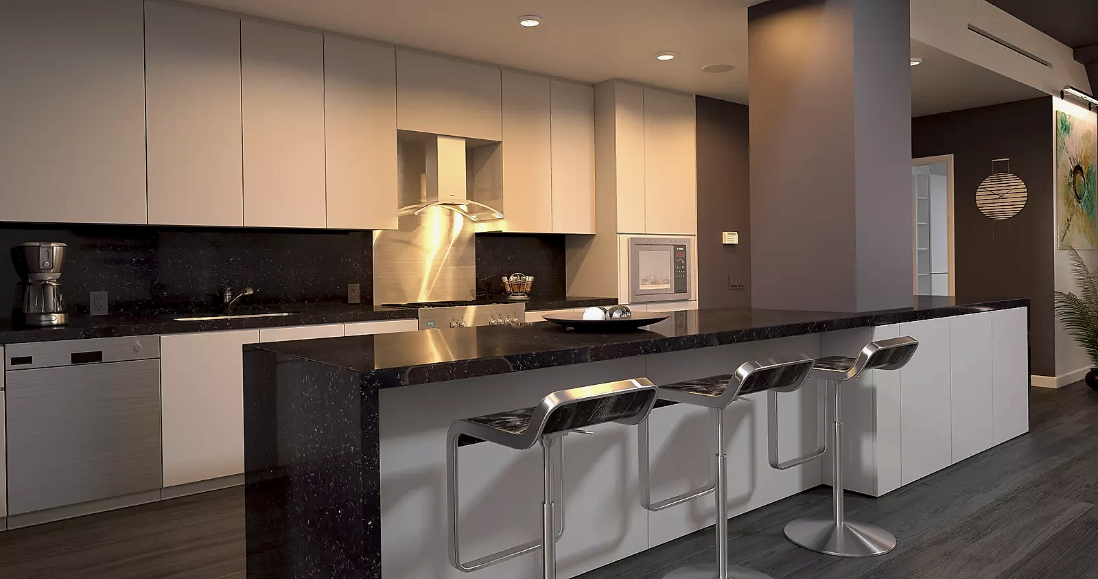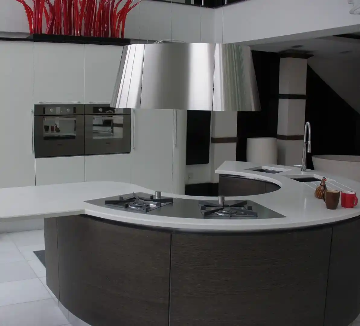- Siyah:Siyah tezgahlar çarpıcı ve dramatik bir görünüm yaratabilir. Büyük mutfaklar için idealdirler ve beyaz dolaplar veya paslanmaz çelik aletlerle güzelce eşleşirler.