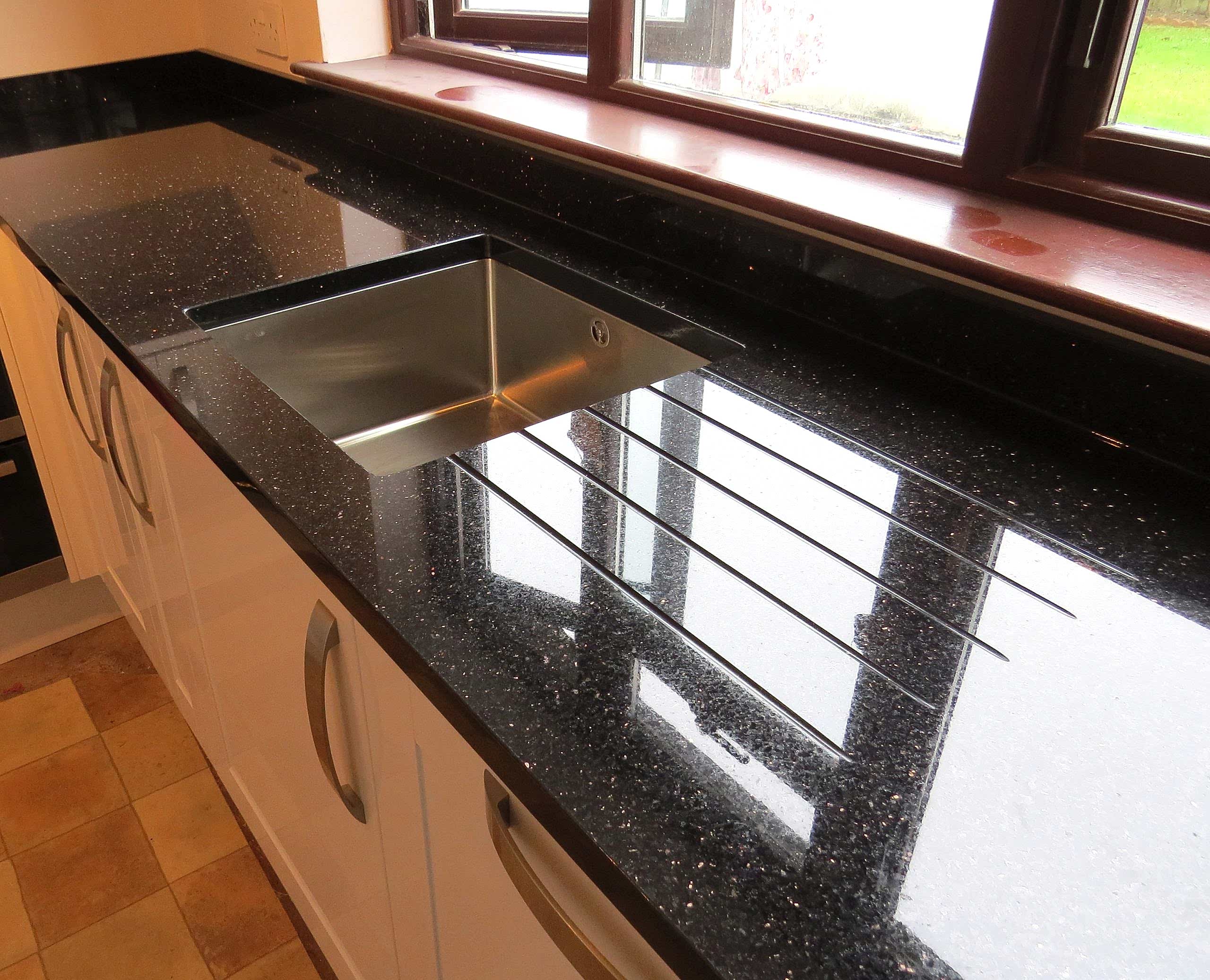 - Siyah:Siyah granit, mutfaklara dramatik ve sofistike bir görünüm kazandırabilir. Ayrıca, lekelere ve çizilmelere karşı oldukça dayanıklıdır.